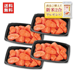 無着色お徳用辛子明太子(切子)300g / 無着色明太子スティック300g(30g×10本) / ヤリイカ明太140g / たらこと昆布のつくだ煮150g / 焼さば明太フレーク90g
