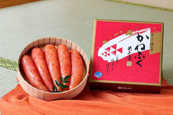 かねふくだからできる稀少な特大サイズの原料を使用したとびきり大きな明太子です。
