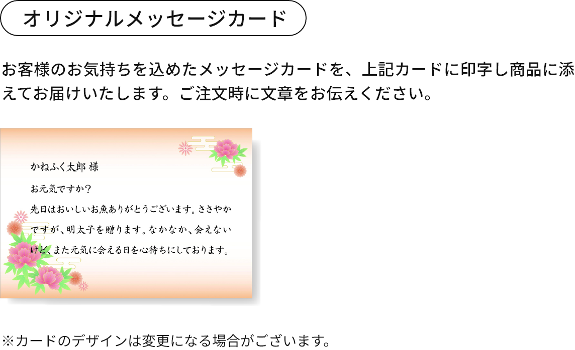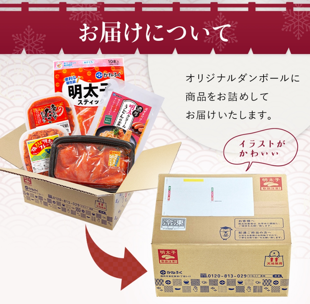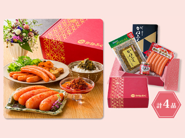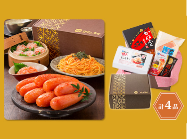 かねふくの明太子を様々な形で楽しめる、詰め合わせギフトセットをご用意。