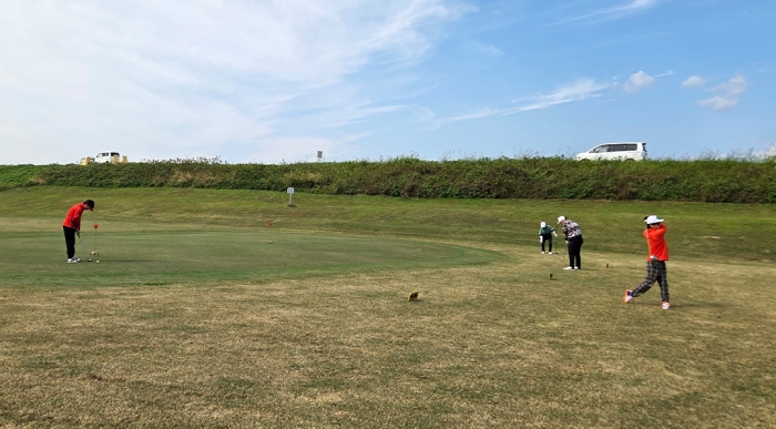 それぞれ真剣な表情でパッティング練習中。スイングチェックしたり気合は十分です。
