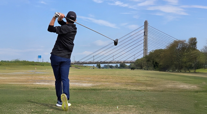 雄大な筑後川を眺めながら、リラックスした雰囲気でプレー。